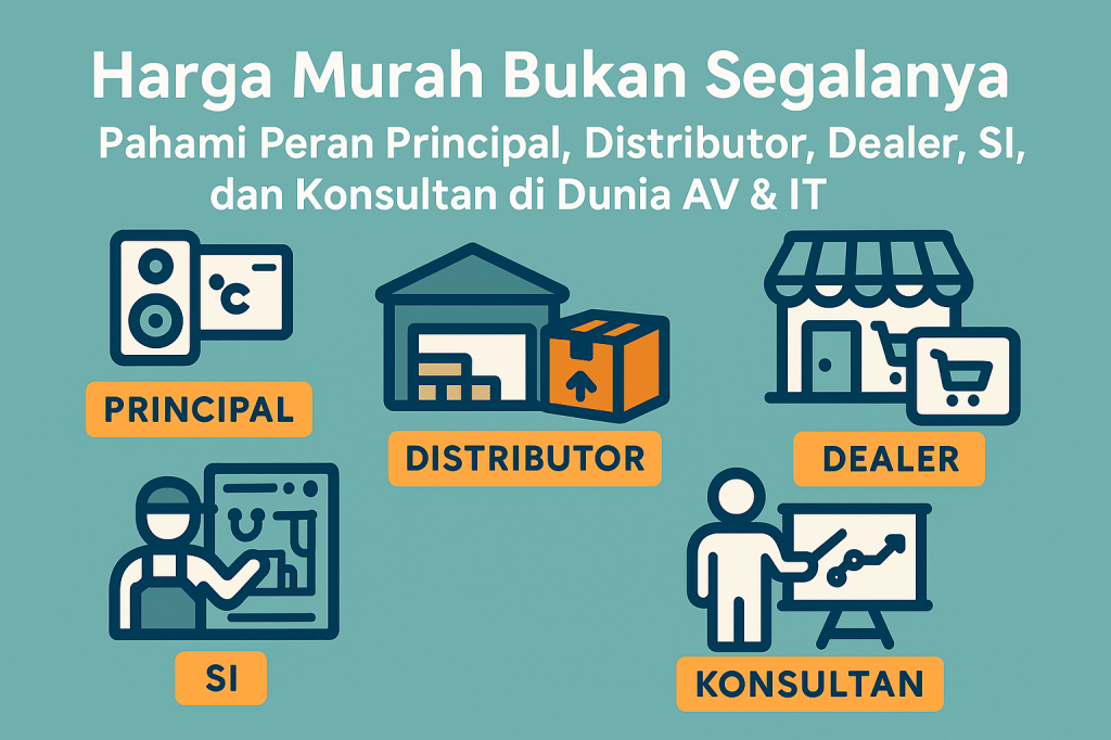 Perlu dipahami bahwa AV, IT & ME bukan sekadar soal membeli alat. Ini tentang membangun sistem yang bekerja secara utuh dan berkelanjutan. Untuk itu, dibutuhkan kerja sama antar pihak dari principal, distributor, dealer, system integrator, hingga konsultan yang masing-masing punya peran spesifik dan penting.